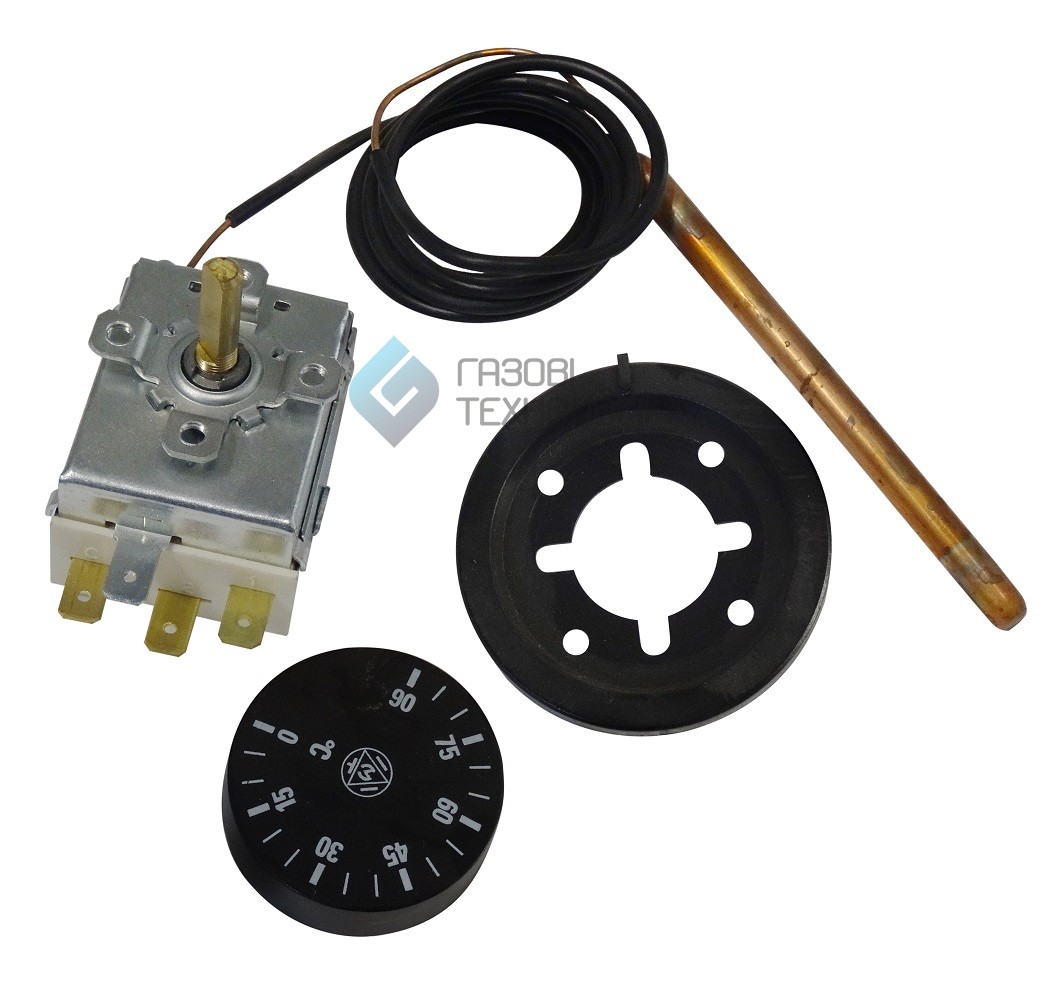 Механічний термостат регульований 0 °C - 90 °C TR2, принцип дії которго заснований на розширенні рідини, призначений для настройки і підтримки в автомати-ному режимі заданої температури теплоносія в опалювальних котлах, електричних радіаторах, воздухонагревателях, пральних і посудомийних машинах, печах різного призначення .
